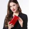 Motyw subtelnych, niezwykle delikatnych piórek, który widoczny jest na całej powierzchni to nie jedyna zaleta portfeli z tej kolekcji. Piękny połysk lakierowanej skóry podkreślają kolory takie jak intensywna czerwień, głęboka czerń oraz romantyczny beżowy.