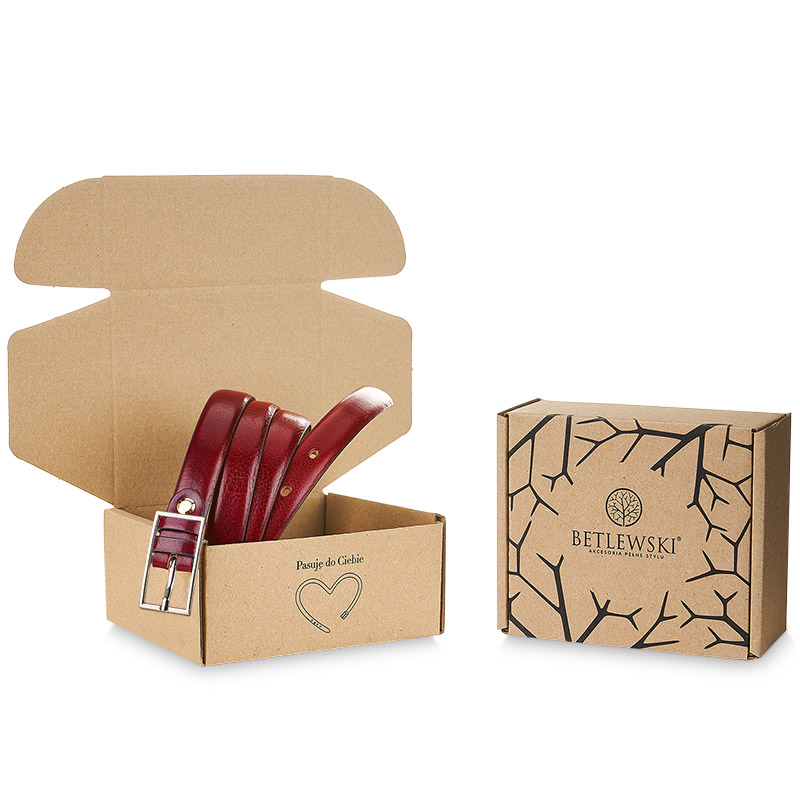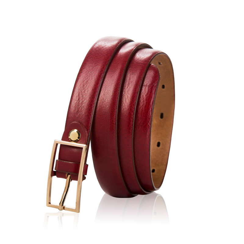Skórzany pasek damski Betlewski® z wytrzymałej bydlęcej skóry licowej - CZERWONY PASEK SKÓRZANY Z ZŁOTA KLAMRĄ Pasek damski LIVIA