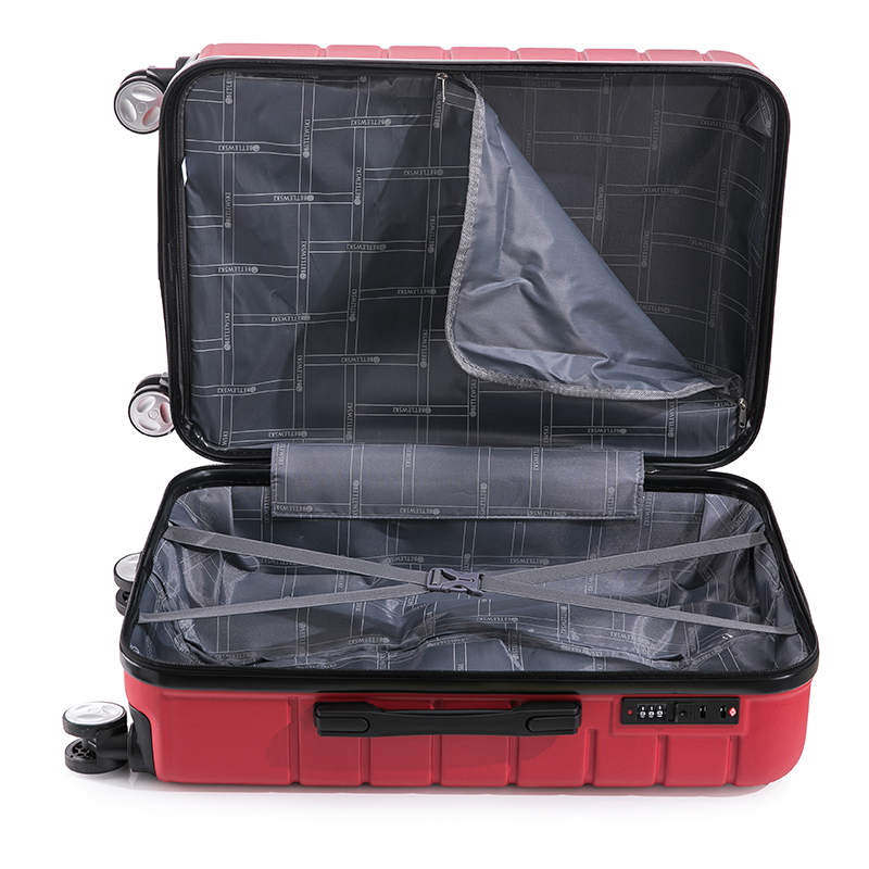 | Dodatkowe cechy | Boczne nóżki ochronne, Boczny uchwyt, Kółka obracane o 360 stopni, Pas do ściągania bagażu, Teleskopowa rączka, Zamek szyfrowy |